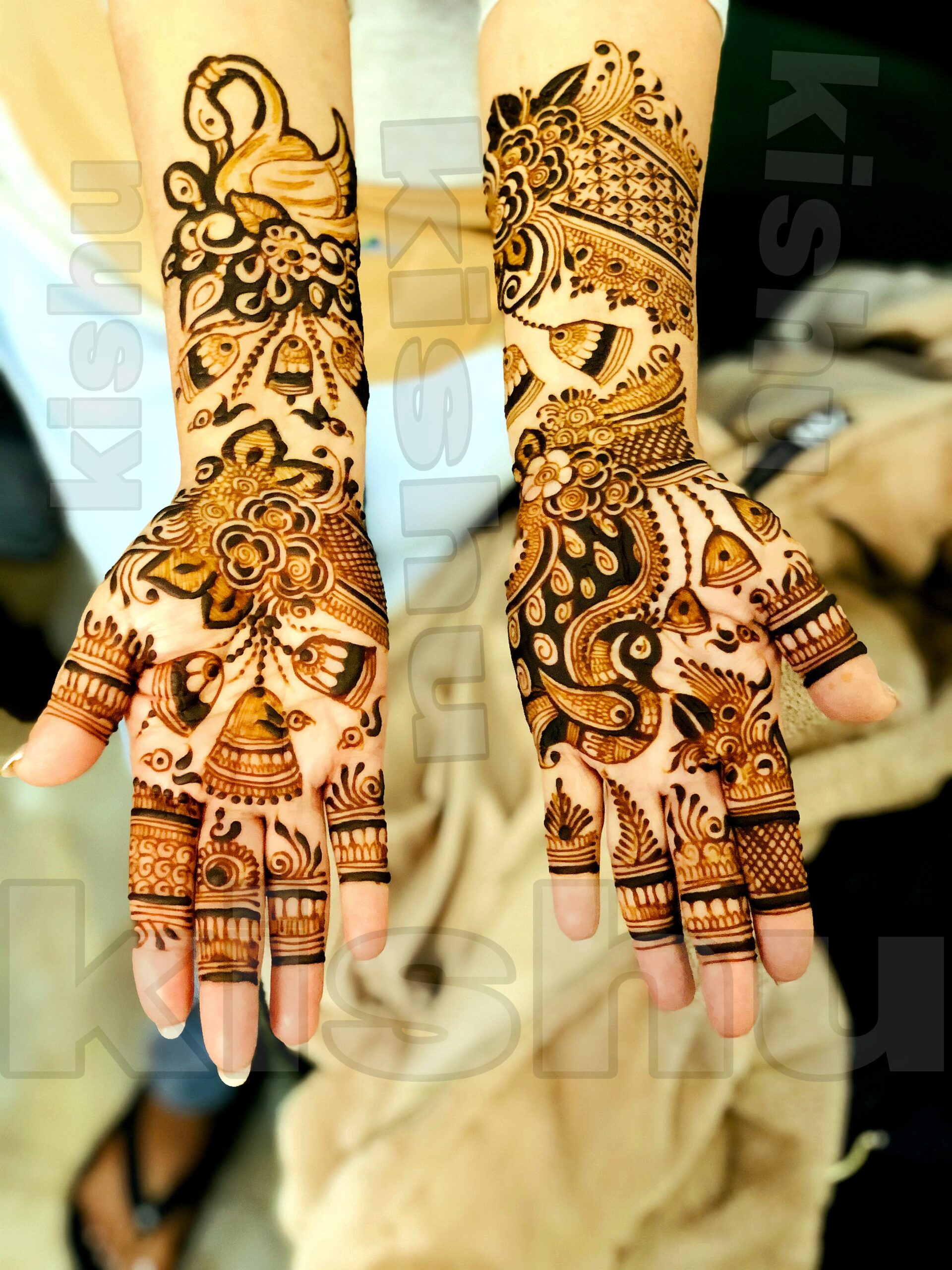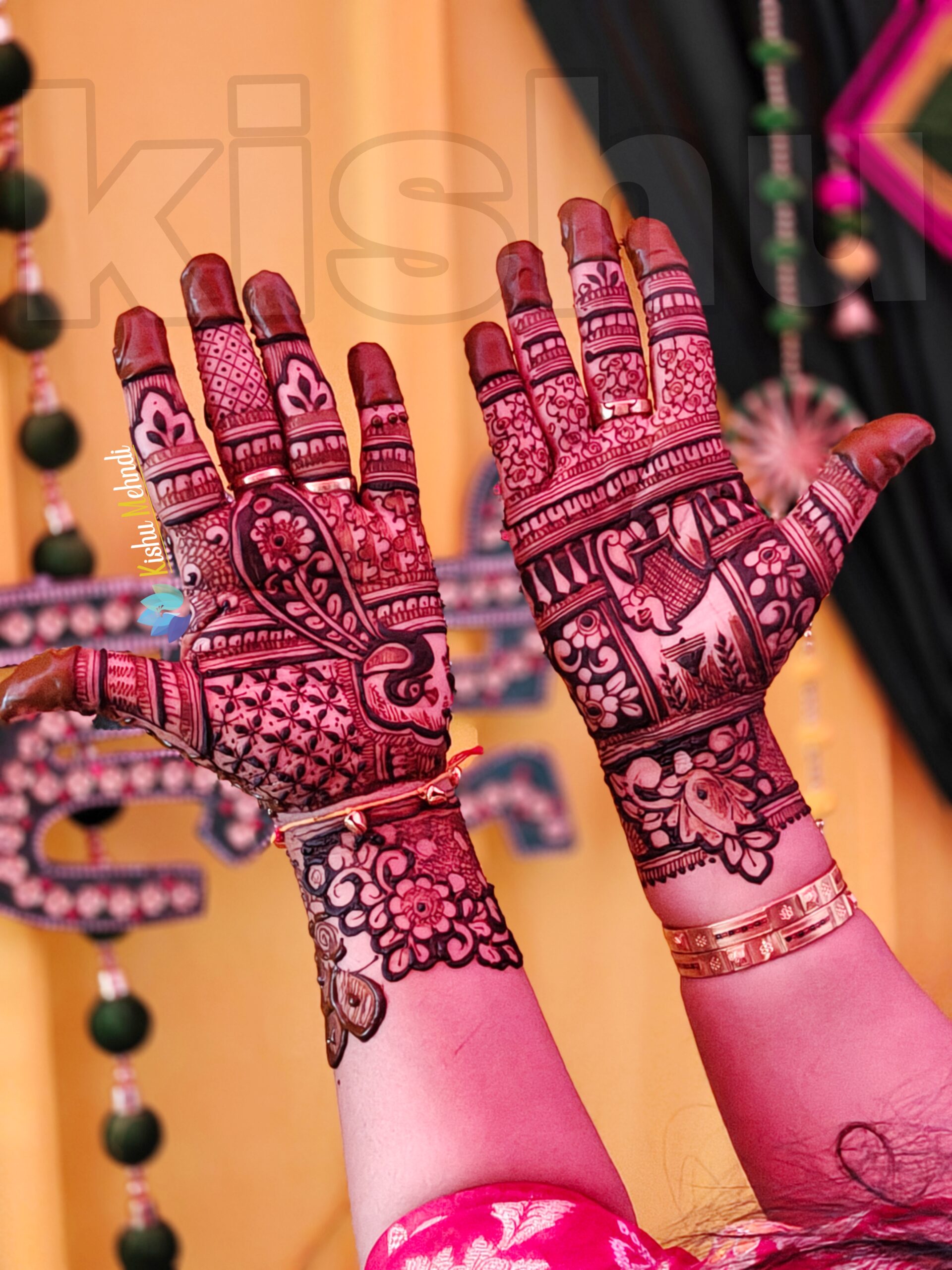 Welcome to Kishu Mehndi, your trusted destination for beautiful and professional mehndi designs in Delhi NCR. We specialize in bridal, wedding, Arabic and party mehndi designs for all types of occasions. We believe that mehndi is not just a design but an important tradition that adds beauty and happiness to every wedding and celebration. Our experienced artists create unique and elegant patterns that enhance the beauty of every bride on her special day. Our goal is to deliver the best mehndi experience to every client. Thousands of clients trust Kishu Mehndi for creative designs, fine detailing, and high-quality natural mehndi cones that give a rich dark color.